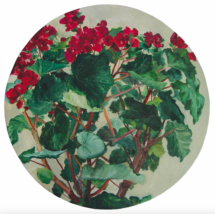 The Tondo paintings have in common the subject matter; flowers and the circular shape of wooden support. Within that framework each has its own story to tell; it’s own emotion and a reason for being. As well as its own language, to an extent; it often feels as if every painting demands a new way of looking and handling the paint.
